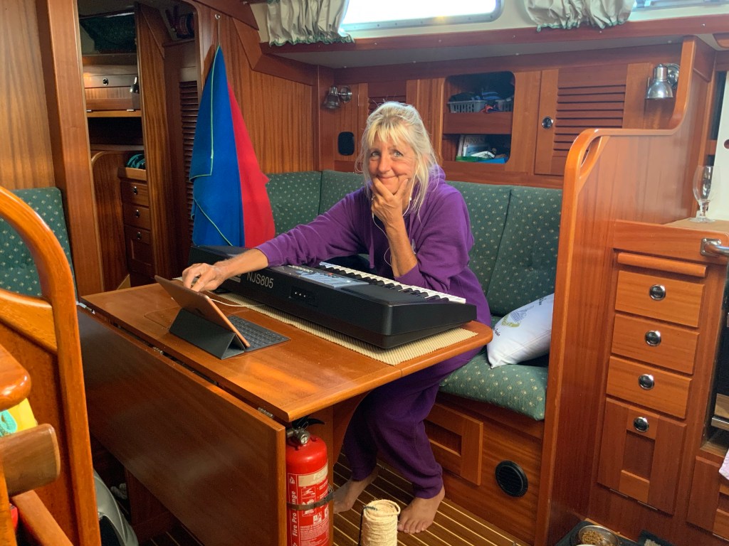 Back on board the sun shone all day long – Tim recorded a bit more of his podcast and Row played her keyboard wearing headphones so the seagulls couldn’t hear her.