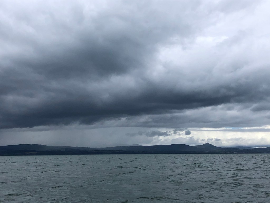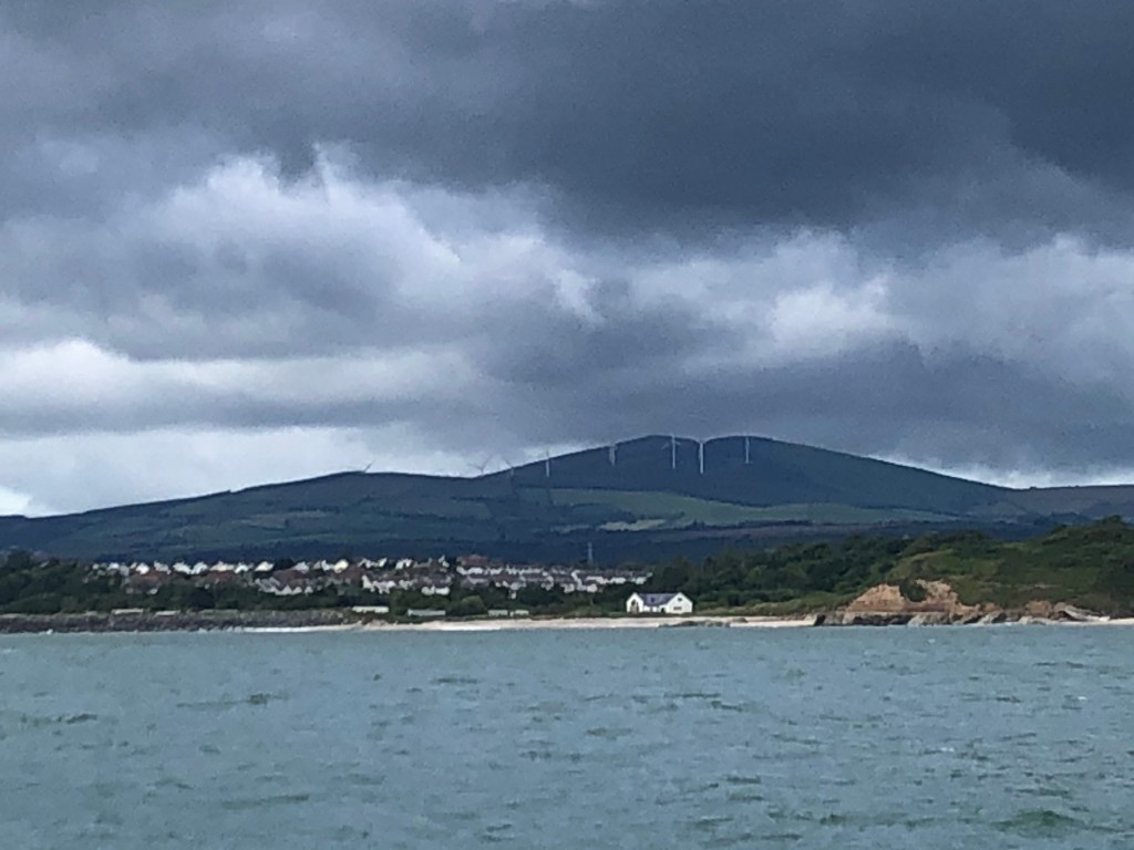 Peering through the 50 shades of grey cloud cover we can still enjoy the scenery of the beautiful Wicklow coastline. The beaches are secluded and sandy, the farmland definitely emerald and we can see miles of unspoilt countryside with spectacular mountains in the background. Even though it is raining, our sails are set, we have plenty to look at and we’re loving this experience.