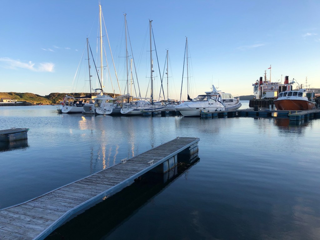 At Proag Bay, Islay, we were joined by several seals bobbing around the boat, they must have liked our singing – we had the musical ‘Half A Sixpence’ playing at the time followed by ‘Grease’, Stockard Channing eat your heart out.