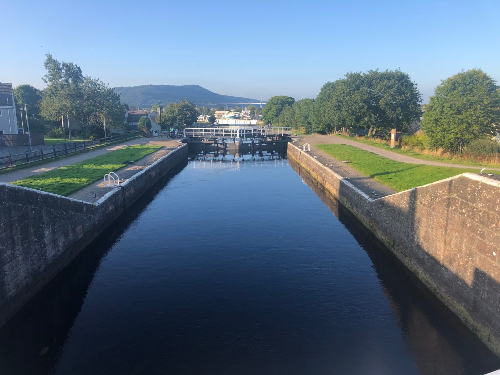 We were the last boat to go through the lock and swing bridge before reaching Muirtown and we tied up by the wall at the top of tomorrow’s locks, between two other sail boats. One of the other boats is heading for Ipswich and the other back to Holland. Lots of sailing stories to be had so another sociable evening.